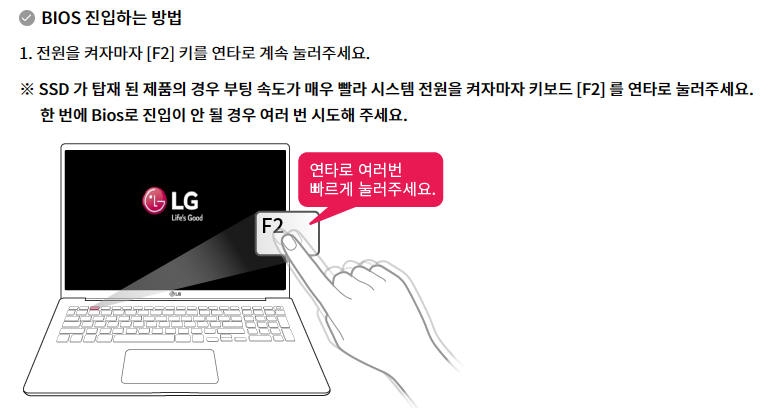 귀찮으면 전원 켜면서 위에 단축키들을 다 연타하면 어지간하면 진입한다.