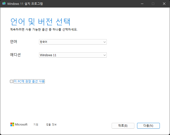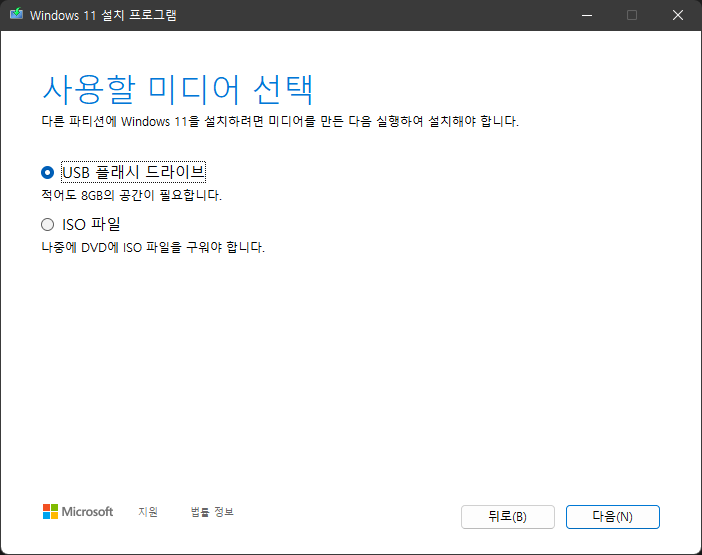 윈도우 11 설치 미디어 만들기