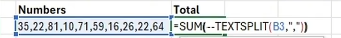 TEXTSPLIT( ๋ฐ์ดํฐ์