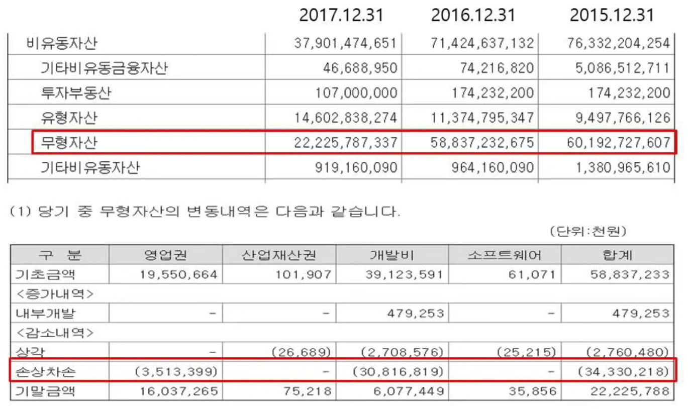 μ νμ 무νμμ° νλͺ©μ 보면. 15λ λμ 600μ΅, 16λ λμ 580μ΅, 17λ λμ 220μ΅μΈ κ²μ νμΈν μ μλ€. 17λ λμ 360μ΅ μμ€μ 무νμμ°μ΄ μ€μ΄ λ€μλ€. (무νμμ° λ³λλ΄μμ μ¬λ¬΄μ ν μ£Όμμμ νμΈν μ μλ€.). μ μ½ κ°λ°νλ νμ¬κ° κ°λ°λΉλ₯Ό 무νμμ°(λ―Έλ κ°μΉ μΈμ )μΌλ‘ μ²λ¦¬νλλ°, κ°λ°μ μ€ν¨ νμ΄ κ·Έλ¬λ©΄ μμ€λ‘ μ²λ¦¬ν΄μΌ λλλ° μ΄ μμ€μ μΌμμ λ°μ λλ€. μλ νμ μμμ°¨μ νμ κ°λ°λΉ μ΄μ 보면 300μ΅ μμμ°¨μ μ²λ¦¬ λκ²μ νμΈν μ μλ€. μ¦ "무νμμ°-κ°λ°λΉ"λ μ€ν¨ν μκ°μ μΌμμ μμ€μ²λ¦¬ λ κ²μ νμΈ ν μ μλ€. κ·Έλ°λ° μ΄ κΈ°μ μ΄ μ μ½κ°λ°μ μ€ν¨ νλ€κ³ λ΄μ€μλ λμ€μ§ μμλ€ νλ€. κ·Έλ κΈ° λλ¬Έμ 무νμμ°(μ¬λ¬΄μνν)μ νμΈν΄μ μ¬μ΄μ¦λ³΄κ³ 'μ μ€ν¨νꡬλ'λΌκ³ νλ¨ν μ μμ΄μΌ λλ€. μμμ°¨μκΈμ‘μ μμ μ΄μ΅μ μν₯μ μ£Όμ§ μμ§λ§, λΉκΈ°μμ΄μ΅μλ μμ€λ‘ λνλλ€.