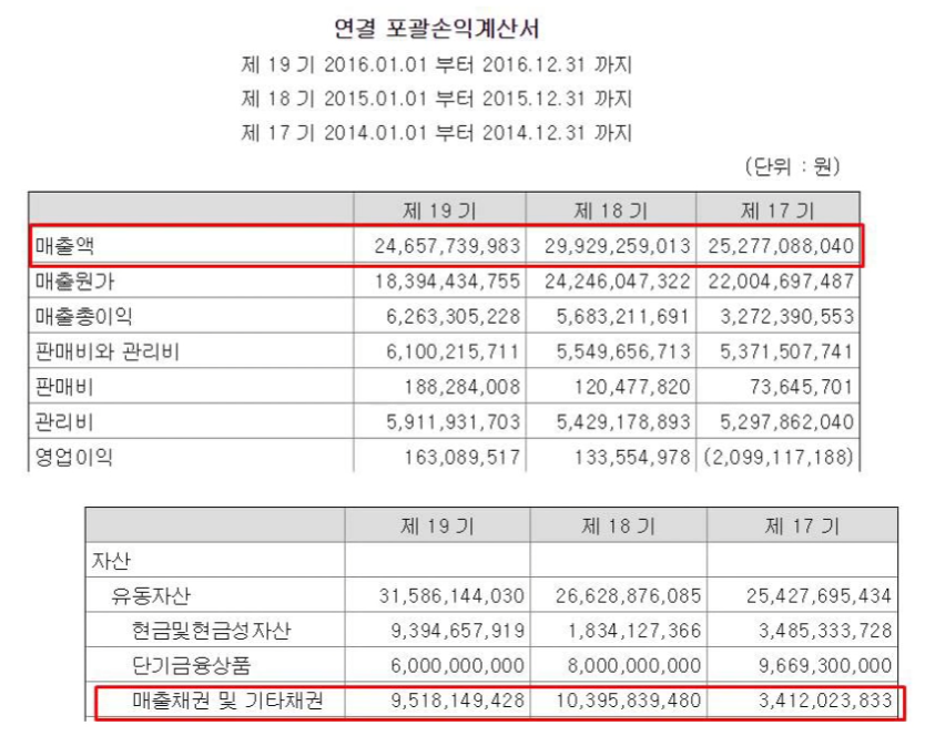 18κΈ°μ λ§€μΆμ‘μ΄ μ κΈ° λλΉ 40μ΅ μμ€ μ¦κ°νλλ°(μ ν), λ§€μΆμ±κΆ 70μ΅μ΄ μ¦κ°(μλ ν). μ¦ μΈμμΌλ‘ μ νμ νλ§€νλ€λ κ²μ μ μΆν μ μλ€. 19κΈ°μμλ λ§€μΆμ±κΆμ΄ μ€μ§ μμ κ²(μλ ν)μΌλ‘ 보μ 19κΈ°κΉμ§λ λ§€μΆμ±κΆμ νμνμ§ λͺ»νλ€λ κ²μΌλ‘ 보μ¬μ§λ€. μ΄λ° κ²½μ° μΈμμΌλ‘ νκ³ λμ λͺ»λ°λ κ²½μ°λΌ λ³Ό μ μλ€. μ΄κ² μ§μλλ©΄ νκ³κ°μ¬λ₯Ό νλ λ΄λΉ νκ³μ¬κ° 'λͺ»λ°μλ, λμΈλ'μ μμ€μ²λ¦¬νλΌ νκ³ , μ΄λ‘μΈν΄ μμ μ΄μ΅(μμ΅κ³μ°μ)μ μμ€λ‘ λ°μλλ€.