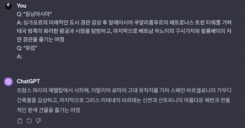 Few shot์ ์์๋ฅผ ํตํด ๋น์ทํ ๋ฌธ๋งฅ์ ์ง๋ฌธ๊ณผ ๋ต๋ณ์ ์ฃผ๊ณ , ๋ค์ ์ง๋ฌธ์ ํ๋ฉด, ์์์ ๊ฐ์ ์ฑ๊ฒฝ์ ๋ต๋ณ์ ๋ฐ์ ์ ์๋ค. ์์์ ์์ ๋ฐ๋ผ ์ ํ๋๋ฅผ ์กฐ์ ํ ์ ์๋ค. [๊ฐ๋จํ ๋ฒ์์์๋ ์ฐ๊ฒ ์ง๋ง, ์์ฃผ ์์ธ ๋ฏ. GPT๋ฅผ ์์ฃผ ์ฌ์ฉํ๊ณ ๋ฒ์ฉ์ ์ผ๋ก ์ฌ์ฉํ์ฌ๋ฉด, ์ ๊ทผ์ฑ์ด ์ข์์ผ ๋๋๋ฐ, ์์๋ฅผ ๊ด๋ฆฌ ๊ท์ฐฎ์ ๋ฏ.]