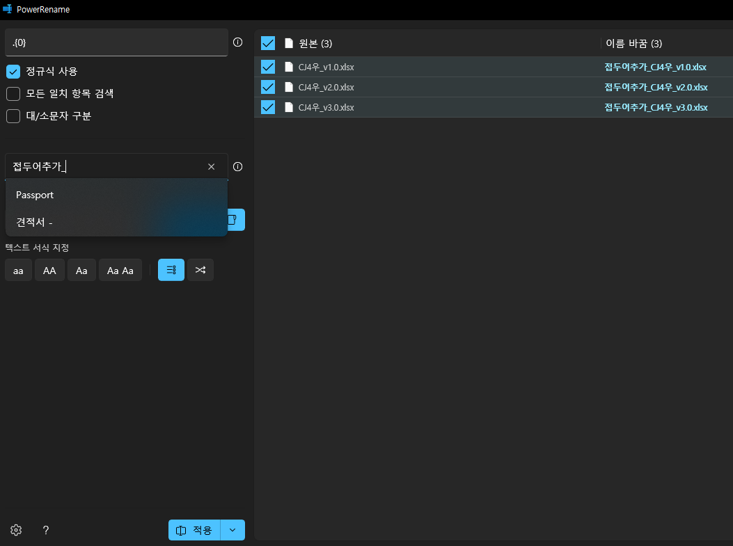 ์ค๋์ PowerRename์ผ๋ก ์ฌ๋ฌ ํ์ผ/ํด๋ ์ด๋ฆ์ ์ ๋์ด๋ฅผ ์ถ๊ฐํ๋ ๋ฐฉ๋ฒ์ ๋จ๊ณ๋ณ๋ก ์๊ฐํ ๊ฒ์.