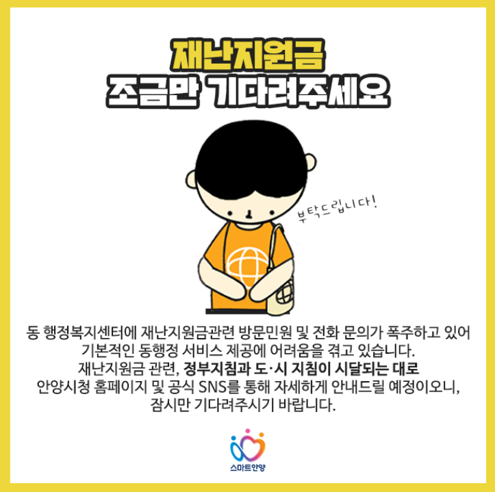 | 안양 재난기본소득 :: 안양 시청 공지 - 5월 11일 부터 신청 가능 (0) | 2020.04.24 |